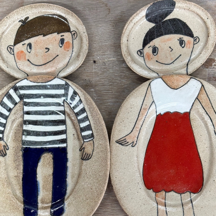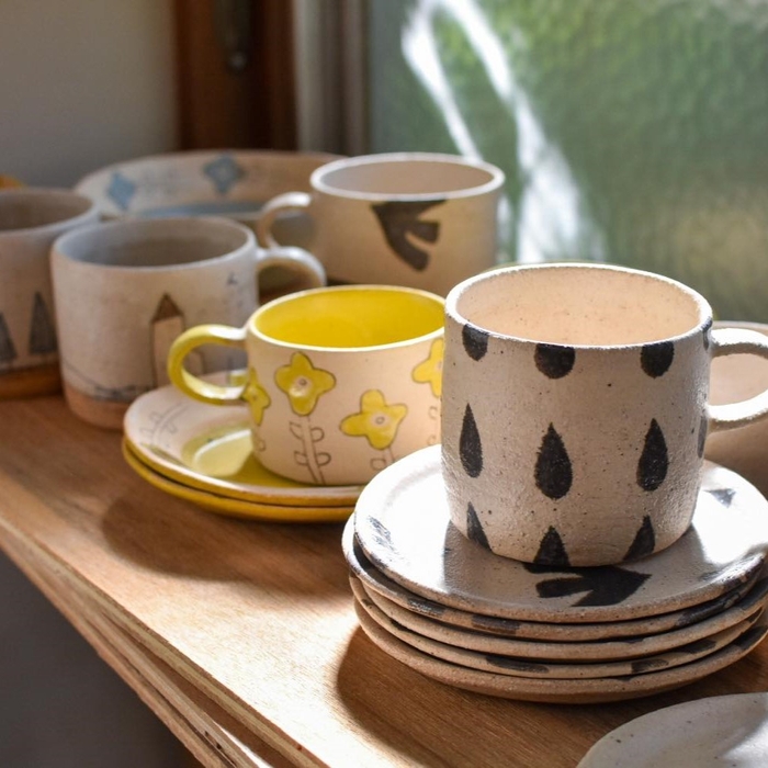 2003年多摩美術大学卒業。神奈川県平塚市出縄で作陶。日常使いの使いやすい器に、食卓をハッピーに彩る絵付けを心がけて作陶している。食洗機可。電子レンジ可(青や黄が入ったものは不可)