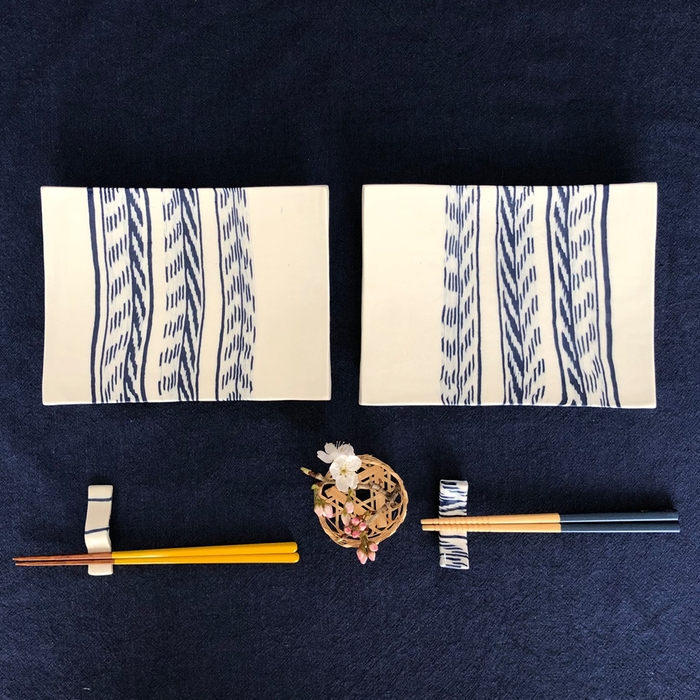 何色もの色粘土で模様を作り、各模様パーツをノリをつけながら大きな粘土のかたまりに仕上げる技法「練り込み」を用い、沖縄の琉球かすり・青森のこぎん刺しなどの模様をモチーフにしたうつわを制作している。電子レンジ、食洗機での使用が可能。9月23日(土)には、「練り込み」技法によるうつわ作りワークショップも開催する。