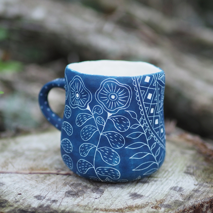山梨県忍野村、富士山の麓で作陶しており、素朴な色合いの器に身近なモノや風景をモチーフにして「線掘り」という技法で絵柄を描く。日常使いをしてほしいとの想いから、カップ類は軽くなるように仕上げている。電子レンジ、食洗機での使用が可能。