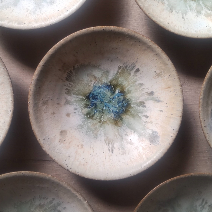 鹿児島出身。有田の窯元や異業種で働きながら作陶を続け、結婚を機に湘南へ。2017年に自分の窯を持ち、現在神奈川県大磯の自宅で作陶中。食器、植木鉢、カヤリ、アクセサリーなど、暮らしの中にあったら良いなと思うものを形にし、普段に使ってもらえるよう丈夫な作りを目指している。今回の展示の見どころは新作「seino blue」。白い土に青い顔料を混ぜて色々な青い土を作り、数種類の土を重ねて捏ねてロクロで挽いて成形。さまざまな青から成る表情豊かなうつわを楽しめる。電子レンジ、食洗機は使用可。オーブン不可。