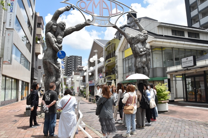 事前調査と1回目の企画により、何を調査すべきか、企画する上でのどのようなことが問題になるかを把握し、課題感をもった上で、5月16日に本調査に臨みました。名古屋鉄道のコーディネイトのもと、実際に瀬戸線のいくつかの駅へ足を運ぶフィールドワークを行いました。午前中は受講生全員で大曽根駅へ。駅の近くを見て回り、大曽根本通商店街振興組合の理事長からは商店街の現状や課題などを聞きました。