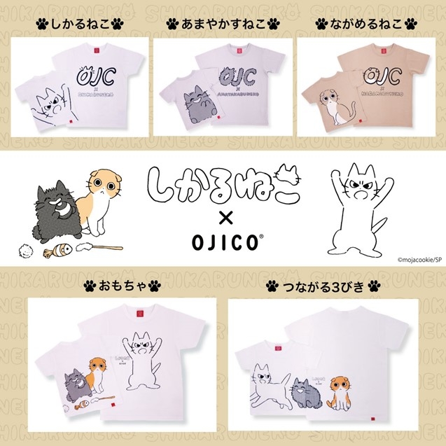 有限会社チャンネルアッシュ(本社:石川県金沢市、代表取締役:越原裕幹)が運営する自社ブランド「OJICO」から先行予約し好評であった「しかるねこ」とのコラボレーションTシャツが入荷、OJICO公式オンラインショップにて通常販売を開始いたしました。