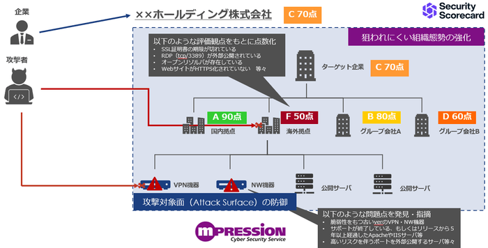 SecurityScorecard,Inc.は、アメリカのニューヨーク州に本社を置く、2013年に設立されたサイバー セキュリティ レーティングの世界的リーディング カンパニーです。1,000万以上の組織を継続的に評価している特許取得済みのレーティング技術は16,000以上の組織で、自社のリスクマネジメント、サプライチェーン リスク マネジメント、経営陣向けのレポート、サイバー デュー デリジェンス、またサイバー保険の料率算定などに活用されています。自社グループ・取引先のセキュリティ リスクを定量的に可視化し、サイバー攻撃による侵害発生の可能性を低減するための具体的なアクションを促すことにより、世界をより安全な場所にすることを目標にしています。