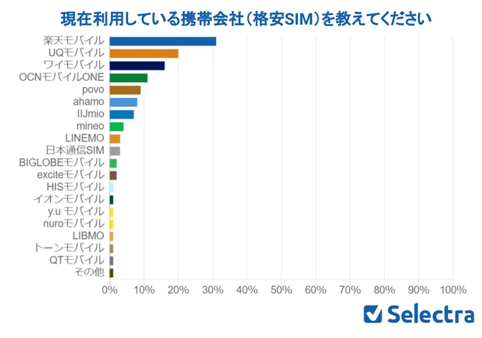 回答者の30%以上が楽天モバイルを利用、サブブランドも人気