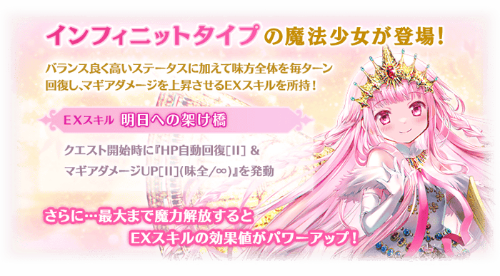 対象の魔法少女を編成して本イベントクエストをプレイする際にステータスを特殊な状態に強化することができます。