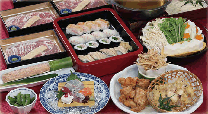 つゆ豚しゃぶ・はかた地鶏水炊き・海鮮うどんすきからお選びいただきます。