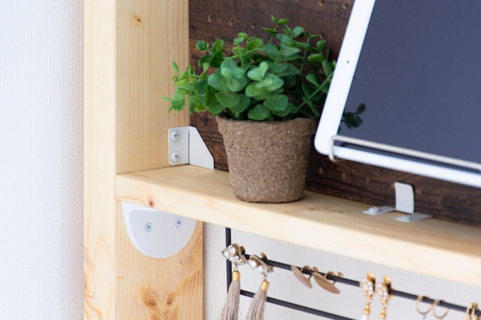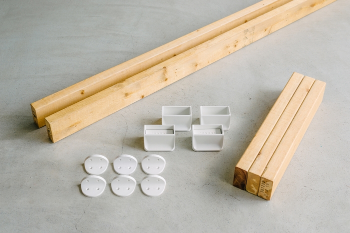 カラー(4色)、サイズ(2×4材用、1×4材用、2×6材用、1×6材用)、アイテム(棚受け、中間ジョイント、ボードブラケット)などラインナップの幅も広げています。