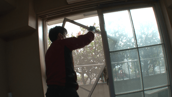 年間4000以上の部屋をきれいに蘇らせてきた濱田さんが訪れたのは、東京・蒲田付近に位置する築25年のマンション。いたるところに黒カビやシミが付着し、キッチンは油汚れでベトベト。加えて、足を踏み入れるのをためらうほどカビだらけになった浴室に、謎の黒ずみがこびりついた玄関・・・。前の住人の8年間にも渡る汚れが溜まりに溜まったこの部屋で濱田さんが最初に着手したのは「網戸」でした。すべて新品に交換すると費用がかさんでしまうため、フレームは再利用。汚れた網を手際良く外し、新しいものに張り替えていきます。