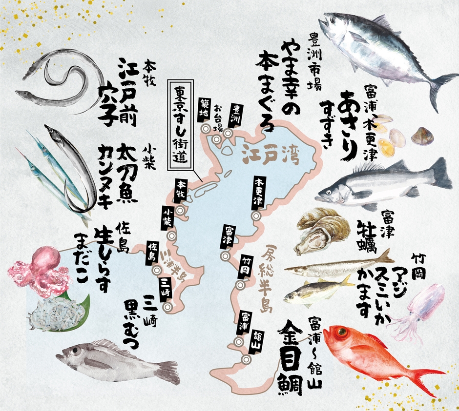 東京の誇る巨大生簀(いけす)の各地で獲れた、厳選鮮魚を巡る“東京すし街道”。