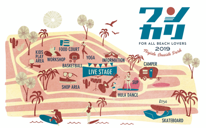 2013年にスタートした当イベントは、同社が刊行する4つのメディア サーフィン誌「Blue.」、ビーチスタイル誌「HONEY」、スケートボード誌「SLIDER」、ウェブメディア「Cucumber Magazine(キューカンバー・マガジン)」主催による1DAYイベント。海やアウトドア好きな人たちに向けて様々なコンテンツを用意し、昨年は4万8千人を動員しています。回を重ねるごとに世代の垣根も越えて広がり、子どもの笑顔も増えています。2018年に名称を「One California Day」から、誰でも読める「ワンカリ」へとリニューアルしたのも、そのため。「ビーチカルチャーの魅力、自然の大切さを次世代へとつなげていくこと」、そんな思いがワンカリには込められています。主なコンテンツは、ライブ、ワークショップ、ヨガ、SUP、スケートボード、ボルダリング、スラックライン。入場は無料です。