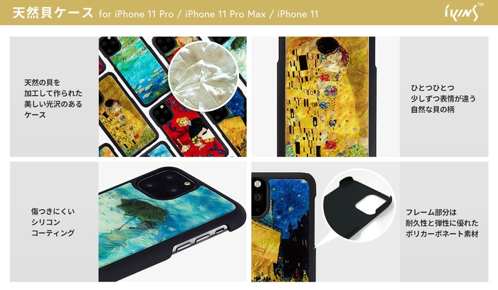 名画を天然貝と重ね合わせたiPhone 11 Pro/11 Pro Max/11専用ケース発売