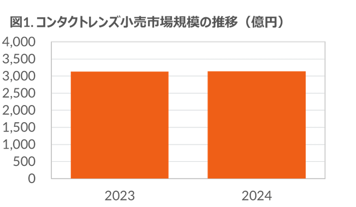 2024年のコンタクトレンズ市場1は、販売金額2前年比0.2%増の3,140億円
