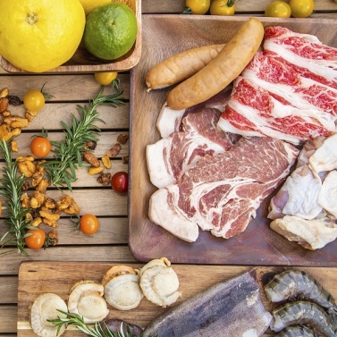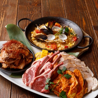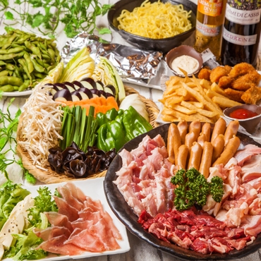 プランは新鮮な魚介類、牛・豚・鳥の肉類、野菜の盛り合わせなどボリューム満点な内容でご用意。