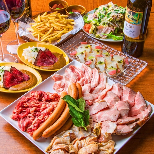 解放感あるテラスで食欲も開放!肉バルでお肉食べ放題BBQ