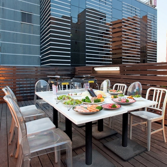 池袋駅直結!開放的な屋上ビアガーデンでコリアンBBQ
