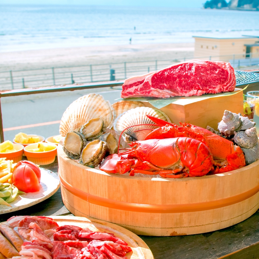 「ゆったり3時間!国産サーロインとオマール海老、あわび付き究極BBQコース9,000円」