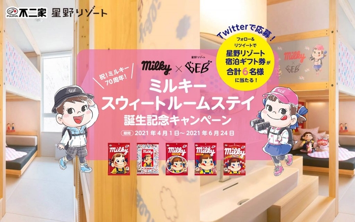 【BEB】ミルキー×星野リゾート BEB ミルキー体験キャンペーン「ミルキースウィートルームステイ」誕生|期間:3月26日(金)より開始
