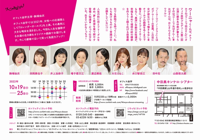 オフィス由宇では2021年、女性への応援歌として『カレンダーガールズ』公演をプロデュース。その勇気に大きな喝采を頂きました。今回も人生を謳歌する女達の生き様をオリジナル戯曲でお届けします。今こそ劇場で泣いて笑って免疫力アップ!