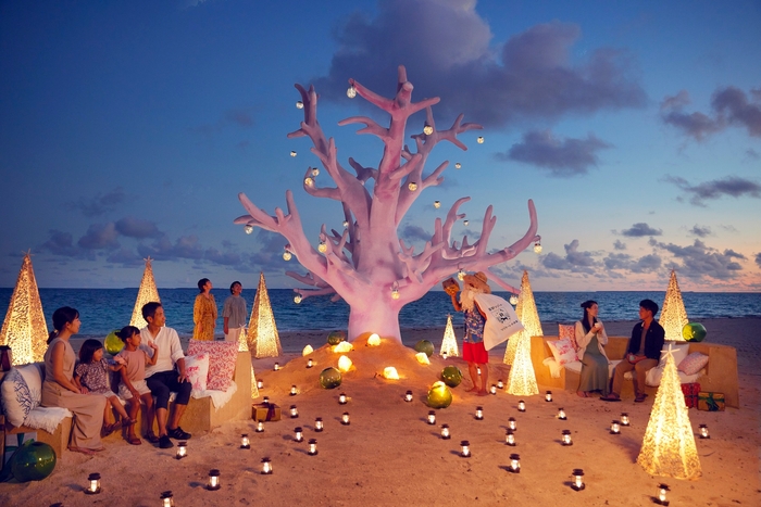 沖縄県八重山諸島に位置する小浜島は、クリスマスの時期である12月でも平均気温は20度と暖かく、ビーチでのんびりと過ごすことができる環境です。小規模プライベートリゾートの当ホテル隣接のビーチで、大切な人と特別な時間を過ごしていただきたいという思いから、昨年2020年より本イベントを開催しています。今年は、ビーチが北半球最大の珊瑚礁「石西礁湖(せきせいしょうこ)」に囲まれていることにちなんで、象徴的なサンゴ型のクリスマスツリーを中心に演出します。