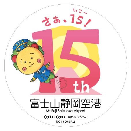 開港15周年のロゴマークは、富士山をバックに、空飛ぶ「コジコジ」と「15」の数字を組み合わせ、「コジコジ」の世界観に通ずる、“かわいくて少しゆるい”イメージでデザインされています。開港15周年ロゴは、富士山静岡空港ターミナルビルの館内装飾や、ステッカープレゼントなどにも使用され、アニバーサリーイヤーを盛り上げます。