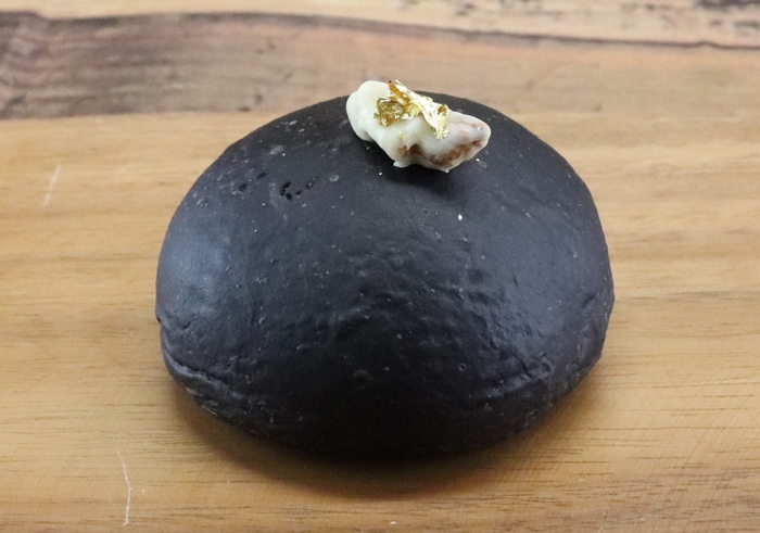ブラックカカオで作った真っ黒でふわふわなパンに、真っ白で雪のようなクリームをたっぷり詰め込んだ、キンイロの冬の人気商品が再登場。中に入っているクリームは、スペイン産レモン蜂蜜で作ったすっきりした味わいのカスタードクリームに砕いたホワイトチョコレートを混ぜ、ミルクが香る優しい口どけに。パンの上には、金箔とホワイトチョココーティングしたクルミをアクセントにのせました。