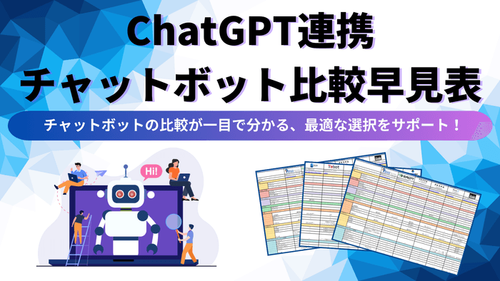 ChatGPT連携チャットボットの導入を検討している企業ご担当者へ「ChatGPT連携チャットボット比較早見表」を無料で配布します。