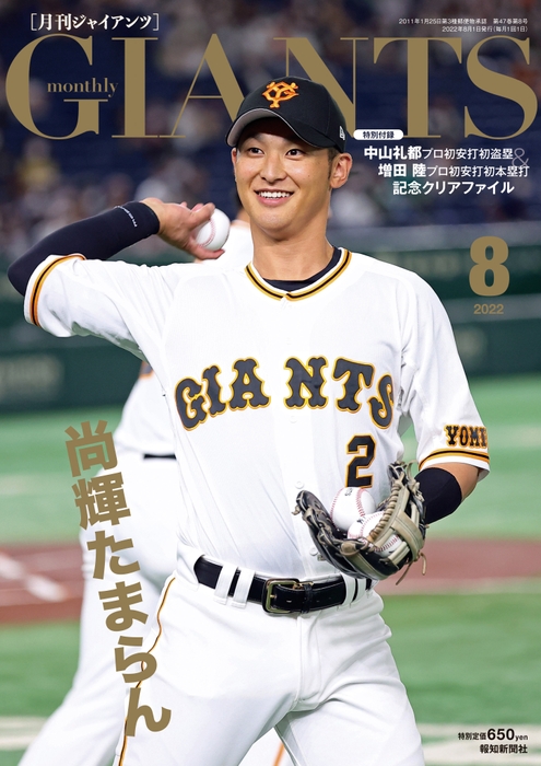「スポーツ報知」を発行する報知新聞社(代表取締役社長・依田裕彦)は、読売巨人軍監修のファンマガジン「月刊ジャイアンツ」2022年8月号を6月24日から順次、全国の書店、オンライン書店などで発売します。A4版88ページオールカラー、増田陸選手プロ初安打&初本塁打と中山礼都選手プロ初安打&初盗塁のクワッド記念クリアファイルが付録の特別定価650円(税込)です。書店での取り寄せ注文可能。お近くのYC(読売新聞販売店)でも注文を承ります。読売巨人軍公式通販サイト「ジャイアンツオンラインストア」、ECサイト「ショップ報知」でも購入できます。
