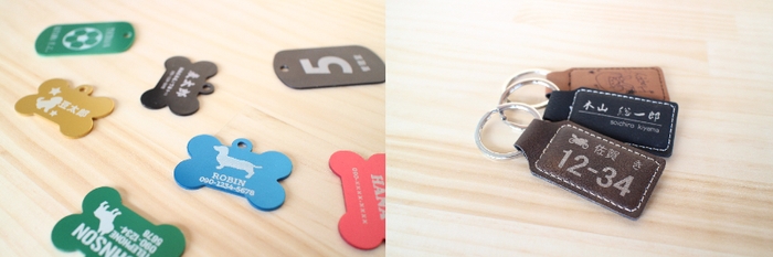 大切なペットが迷子になってしまった時、タグを見てくれればきっと戻って来てくれます。お名前や連絡先等自由にアレンジすることができ、長持ちする素材で作成することもできます。ペット以外でも、お子さまや大切な持ち物につけることも。