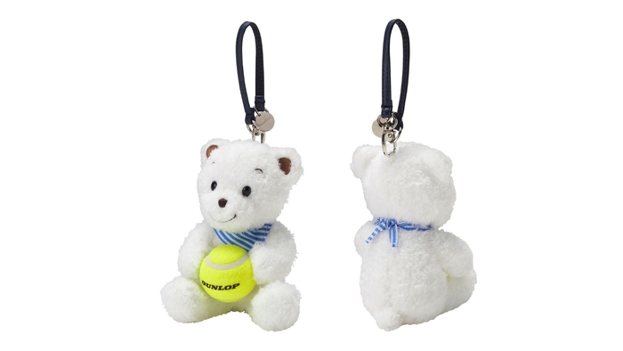 ファミリアのオリジナルキャラクター「ファミちゃん」がダンロップのミニテニスボールを持ち、ストライプのスカーフを巻いたコラボレーションならではのデザインです。好きなバッグに付けてお楽しみください。