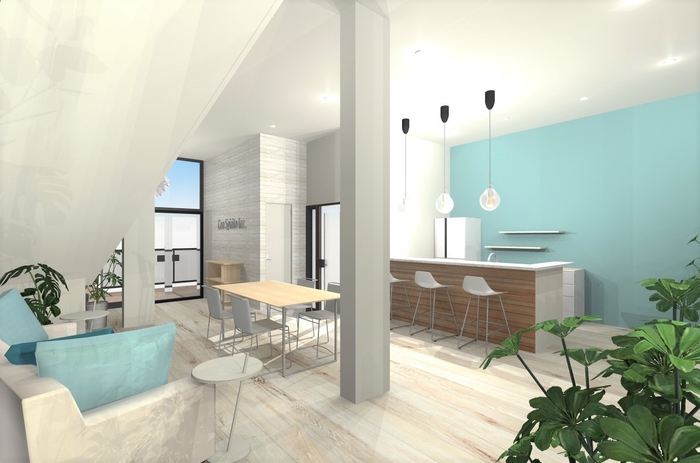 新オフィスは、スタッフ同士のコミュニケーションが円滑になるような ” 集う場 ”として機能する場所でありながら、お客さまや地域の方々にとって、お茶に立ち寄るカフェのような” 集える場 ”であることが弊社の考えるあたらしいオフィスの在り方です。
