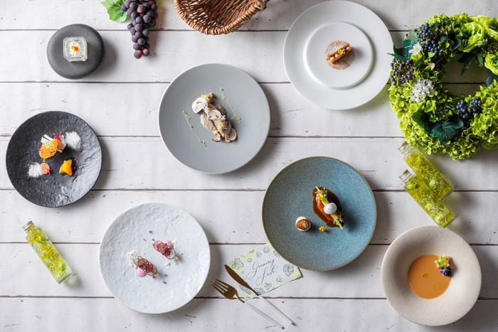 「グラマシースイート」では大地の恵みが豊富な長野県と秋の味覚が満載な山梨県の「甲信地方」をテーマに長野パープルやシャインマスカット、林檎など人気の高い果物を使い食材の旨味を凝縮した料理をお楽しみいただけます。