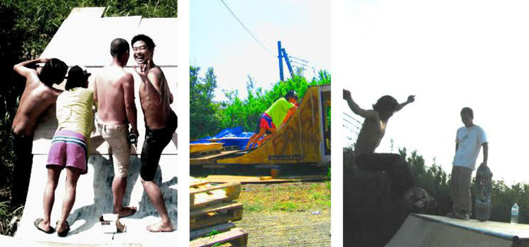 当時千葉県でお借りして生活していた、海が見渡せる山に建つ小屋の前にスケートボード用のランページを作っていたのですが、みっちゃんはその手伝いをしに毎日朝から晩まで来てくれました。手伝いと言っても給料を支払っていた訳ではないのですが、彼は毎日現れ、お互い目の前にある楽しみにのみ注力していました。