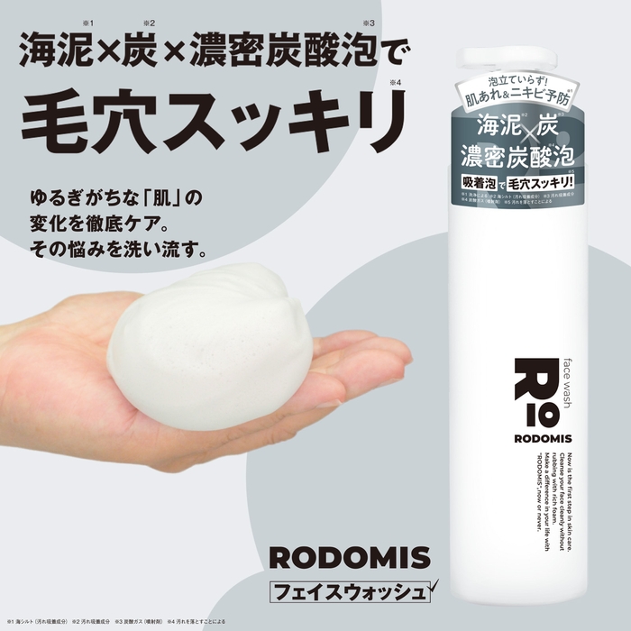 つっぱらないのに毛穴スッキリ。海泥×炭配合の炭酸泡洗顔「ロドミス フェイスウォッシュ」〈2022年8月新発売〉