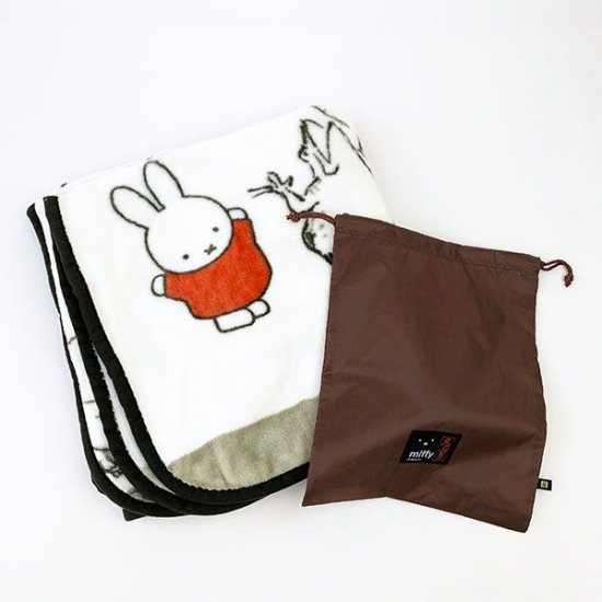 ミッフィー×鳥獣人物戯画のデザインは、この時期にピッタリなブランケットもございます。フワフワであったかなロングブランケットなので、冷えやすい足元を守ってくれてしかも可愛い♪ブランケットにはミッフィーのお顔ワンポイントが素敵な収納袋付きです。