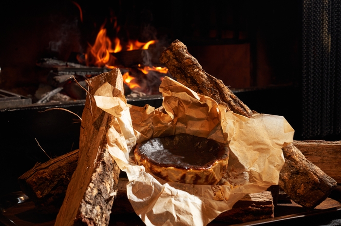 お客様の強いご要望に応え、このたび商品化に至った「薪焼 銀座おのでら」の薪焼バスクチーズケーキ。本場・バスク地方での修業経験を持つシェフ・寺田 惠一が、薪窯の力強い火力を生かして焼き上げます。九州産の上質なクリームチーズを贅沢に使用し、薪窯で焦がすようにつけられた焼き目からは想像できない、繊細な口当たりと芳醇な香りを実現。そして薪火の薫香が、他では決して味わえない唯一無二のハーモニーを奏でます。