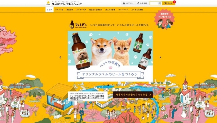 ここ5年で販売数が6倍以上(※)に急成長しているサッポロビールのオリジナルサービス。スマホやPCで、お気に入りの写真とお好きなラベルフレームやスタンプを使ってオリジナルラベルのビールが簡単につくることができ、最短で注文から1週間以内に発送し、お届けします。ペットオーナー様からは、ご自身の愛するペットの写真を使った世界に1つだけのビールがつくれると大変好評です。ペットオーナー仲間でプレゼントし合うなどの楽しみ方もあり、コミュニケーションの1つとしてもご利用いただいています。