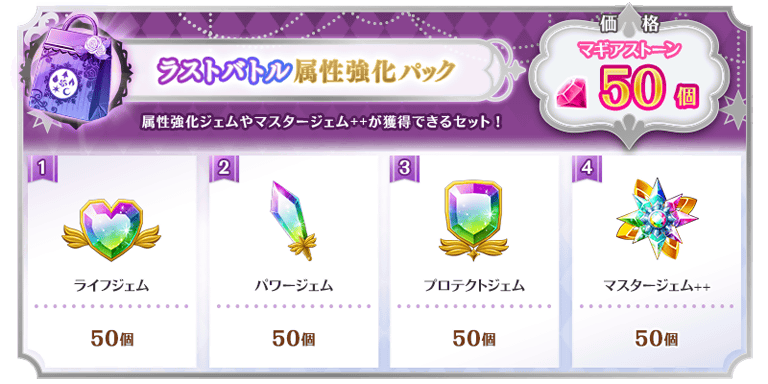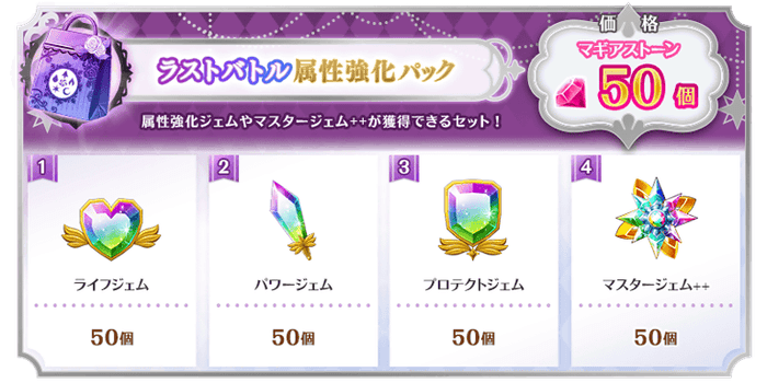※「ラストバトル応援 属性強化パック(無償)」のご購入はおひとり様3回までです。