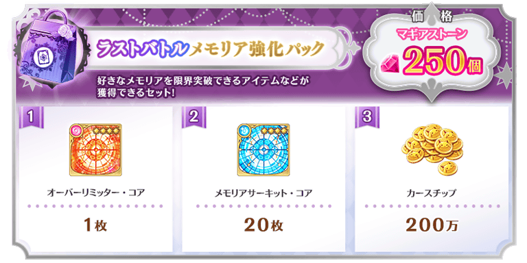 ※「ラストバトル応援 メモリア強化パック(無償)」のご購入はおひとり様2回までです。