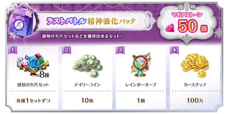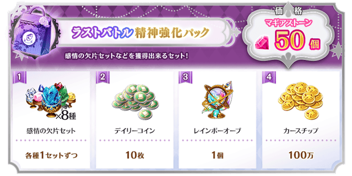 ※「ラストバトル応援 精神強化パック(無償)」のご購入はおひとり様3回までです。