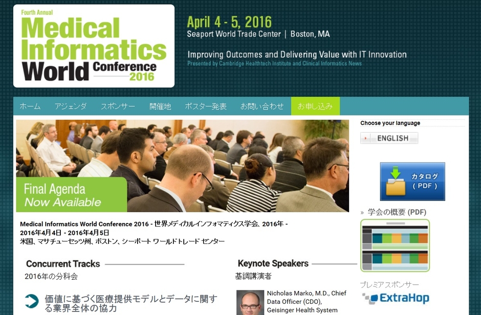 国際学会 「世界メディカルインフォマティクス学会 2016年」(Cambridge Healthtech Institute主催)の参加お申込み受付開始
