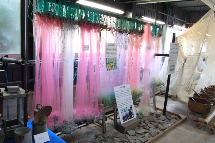 今春リニューアルオープンしたばかりのおきしま資料館には、沖島の昔の写真や生活道具が展示されています。漁具展示もあり、びわ湖の漁業について詳しく学んでいただけます。