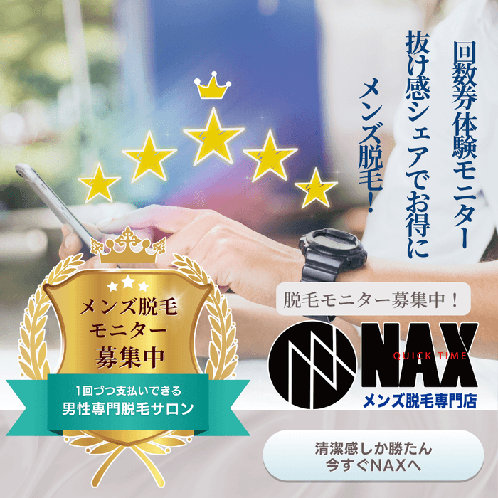 そんな方におすすめなのが、メンズ脱毛サロンNAXの『脱毛モニター募集』!