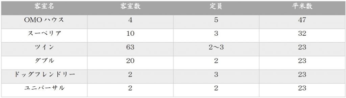 客室、OMOベース(フロント、OMOカフェ、ラウンジ、ライブラリー、ショップ)