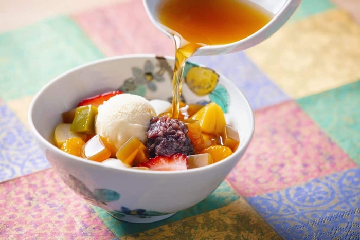 金沢で親しまれている食材を使い、和洋それぞれで楽しめるメニューを揃えました。例えば、棒茶の風味を存分に味わえる「棒茶あんみつ」。これは、白玉やフルーツなどに棒茶を煮出して作った寒天を加え、さらに棒茶のシロップをかけて楽しめます。また、自分でクリームを絞って仕上げる体験型のスイーツ「五郎島金時(サツマイモ)のモンブラン」は、写真映え間違いなしの一品!その他、棒茶の香りと、優しい甘みの甘酒との組み合わせがたまらない「棒茶甘酒チャイ」や、地元で生産されているクラフトビールなども販売しています。