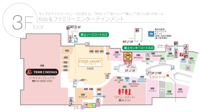 イオンモール福津3F、ファッションや雑貨店、アミューズメントやシネマ、フードコートといった注目専門店がぎゅっとつまったフロアです!