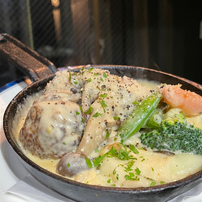 ホワイトキノコ、マスタードハニー、トマト、デミグラスなどいずれも劣らぬ完全手作りのソースはシェフの真骨頂。