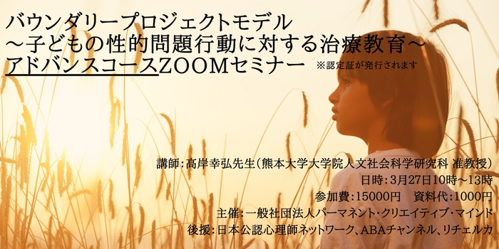 バウンダリープロジェクトモデル 〜子どもの性的問題行動に対する治療教育〜 アドバンスコースZOOMセミナー