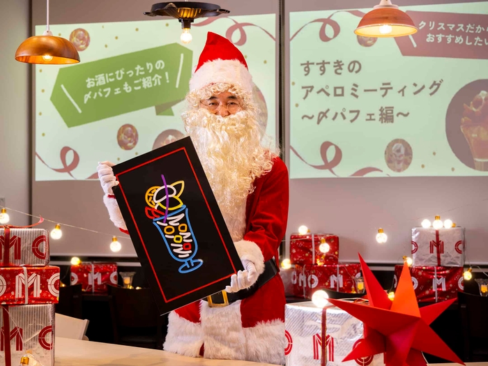 サンタクロースに扮したご近所ガイド「OMOレンジャー」がすすきのアペロミーティングを実施します。OMOレンジャー独自の目線で、クリスマスならではの〆パフェの楽しみ方を伝えるプログラムです。例えば、クリスマス限定の〆パフェや、ワインやカクテルなどと一緒に楽しめるロマンチックな〆パフェなどを紹介します。毎日無料で開催しているので、夕食や〆パフェを食べに行く前に気軽に立ち寄ってほしいと考えています。サンタクロースから、嬉しいサプライズプレゼントがもらえるかも!