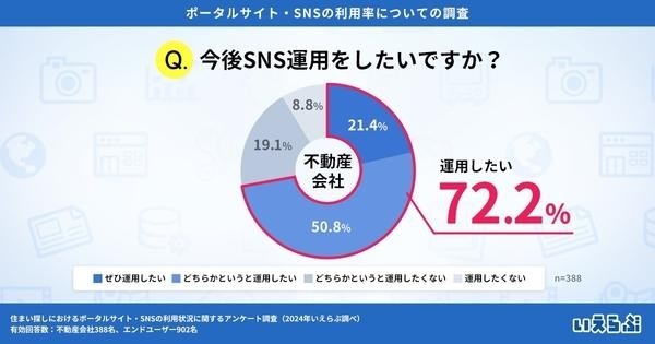 今後SNS運用をしたいと回答した不動産会社は72.2%でした。