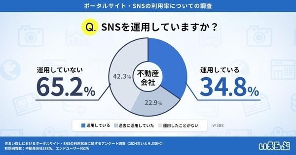 前回調査(2023年7月公開)では、65.1%の不動産会社がSNSを運用していない結果となりました。